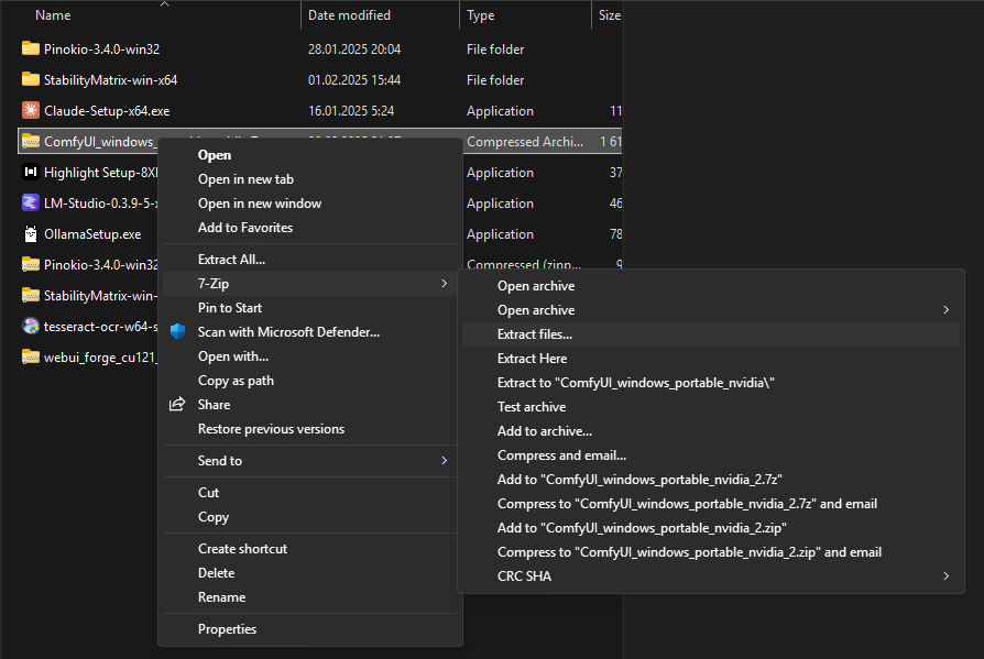 Скачайте архив ComfyUI_windows_portable_nvidia.7z для Windows.(1)