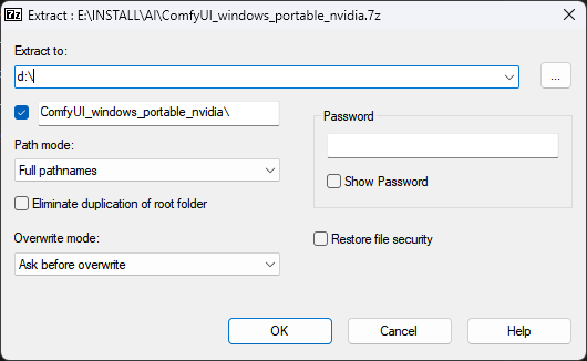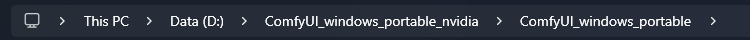 Распакованный архив ComfyUI_windows_portable_nvidia содержит папку ComfyUI_windows_portable. Чтобы не удлинять путь к папке, я переместил(1) ComfyUI_windows_portable в корень диска D:/.